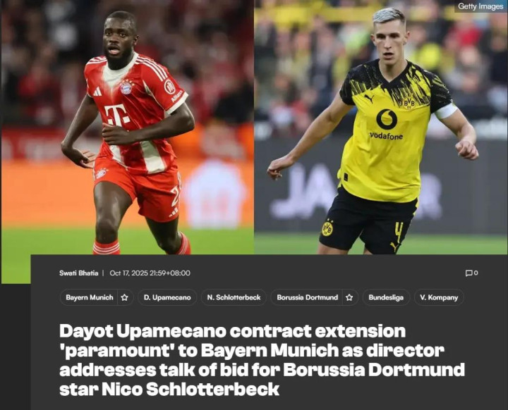 在拜仁对多特蒙德的大战之前,拜仁总监艾贝尔回应了他们和多特中卫施洛特贝克的传闻,不过他表示拜仁的首要目标是续约留住乌帕梅卡诺。